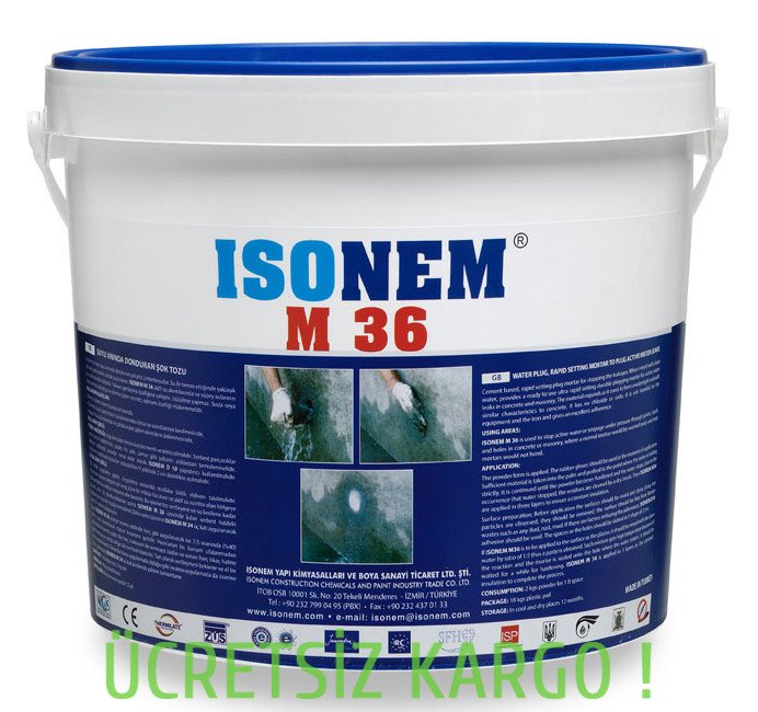Kullanıma hazır, suyu anında donduran şok priz çimentosudur. Su ile temas ettiğinde yaklaşık kırk saniyede prizini alarak suyu keser. ISONEM M 36 aktif su akıntılarında ve yüzey sularının kurutulmasında kullanılır. Yüksek genleşme özelliğine sahiptir, büzülme yapmaz. Soda veya klor içermez, donatıya ve demire zarar vermez, aderans özelliği mükemmeldir.